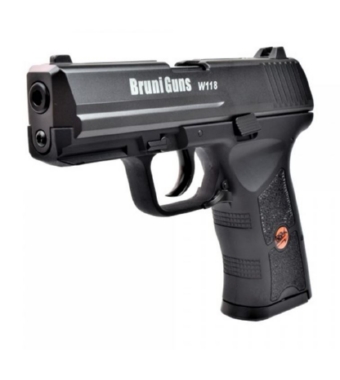 Prodotta da Bruni, nuovissima pistola ad aria compressa modello W118 calibro 4,5 mm (.177), colore nero.