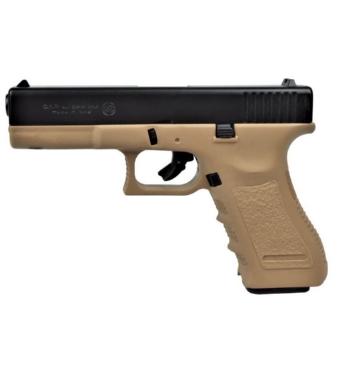 Prodotta da Bruni, pistola a salve modello Glock 17 calibro 8 mm, colore nero - tan.
