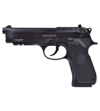 Prodotta da Bruni, pistola ad aria compressa scarrellante modello M92, colore nero.