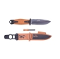 La parte posteriore della lama ha una rientranza che può essere utilizzata per colpire l’accendifuoco. La pietra focaia che accende il fuoco si inserisce nella robusta guaina in polimero, assicurando che non si perda, ma sia prontamente disponibile quando ne hai bisogno. L’impugnatura è dotata di un’impugnatura in polimero gommato con un colore arancione ad alta visibilità che ti consente di trovarlo facilmente.
