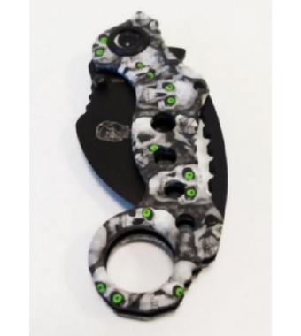 PRODOTTO DALLA COUGAR COLLECTION, ESCLUSIVO COLTELLO TASCABILE RICHIUDIBILE MODELLO KARAMBIT CON FANTASIA TESCHI.