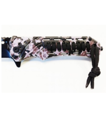 Prodotto da Cougar Collection, a serramanico, con lama in acciaio inossidabile stainless steel aisi 420 colore nero , impugnatura in abs antiscivolo colore pixel mimetico + laccio paracord.