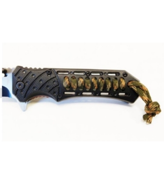 Prodotto da Cougar Collection, a serramanico, con lama in acciaio inossidabile stainless steel aisi 420 di colore nero , impugnatura in abs antiscivolo colore nero + laccio paracord.