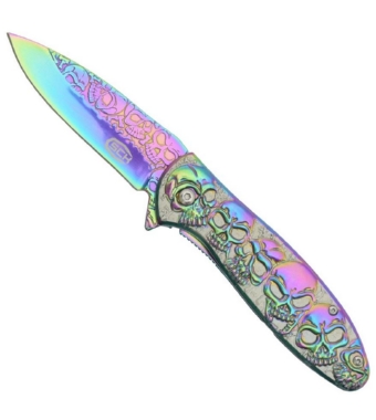 Prodotto da steel claw knives, coltello richiudibile modello teschi.