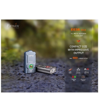 FENIX TORCIA PORTACHIAVI E03R V2.0 500 LUMENS RICARICABILE