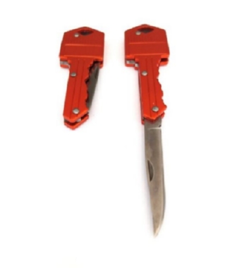 Esclusivo coltellino tascabile portachiavi dalla forma di chiave, colore arancione.