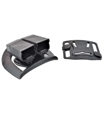 Prodotta da Royal plus, fondina rigida porta due caricatori modello Glock, colore nero.