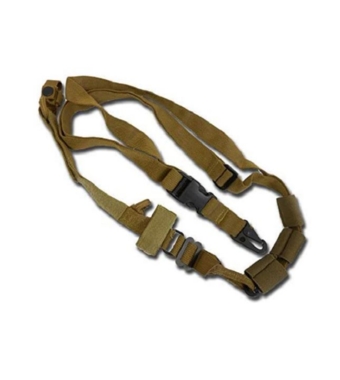 Prodotta da Royal plus, cinghia tattica da tracolla a tre punti di ancoraggio per trasporto fucili, colore tan.
