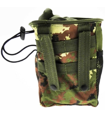 Realizzata in cordura rinforzata, fissaggio con sistema MOLLE per corpetti e cinturoni.