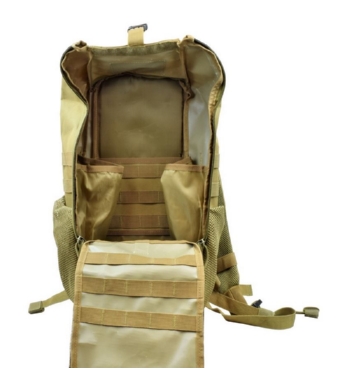 Prodotto da Royal Plus, zaino tattico 15 litri porta camelback in colorazione tan.