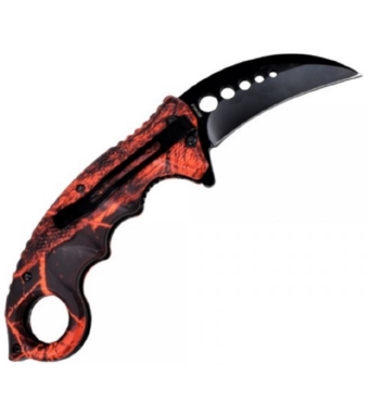 ESCLUSIVO COLTELLO TASCABILE RICHIUDIBILE MODELLO KARAMBIT CON FANTASIA MIMETICA ROSSA.