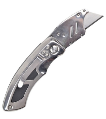 Realizzato con lama in cabonio in stile taglierino intercambiabile, con copri lama in acciaio inox.