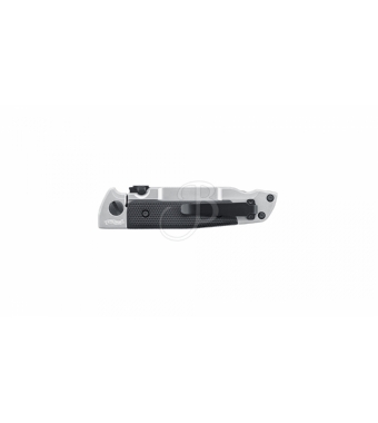 Coltello ispirato nel design alla fortunata pistola Walther Q5 Steel Frame, design tattico con impugnatura e blocco in acciaio, lama con finitura nera, realizzata in resistente acciaio D2, manico in FRN in un unico pezzo con motivo superficiale originale Q5, ottima presa, data dalla zigrinatura sul telaio, thumbstud ambidestro, clip da tasca reversibile (ribaltabile / l-r), con foro per laccetto.