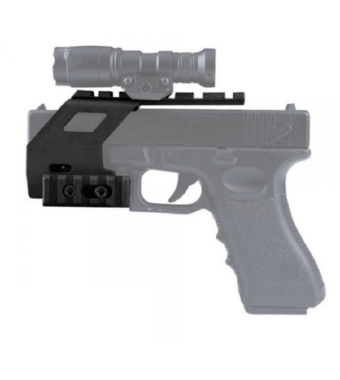 Utilizzandola possono essere aggiunte slitte superiori e laterali per il fissaggio di accessori a pistole serie Glock (17 - 18 - 19).