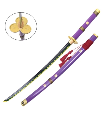 Katana ornamentale prodotta a mano ispirata a One Piece Wado Ichionji di roronoa zoro, in colorazione viola.